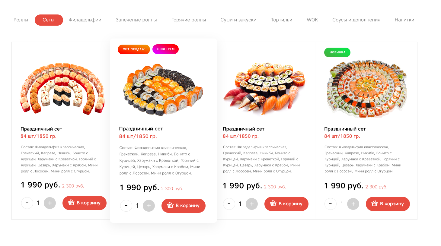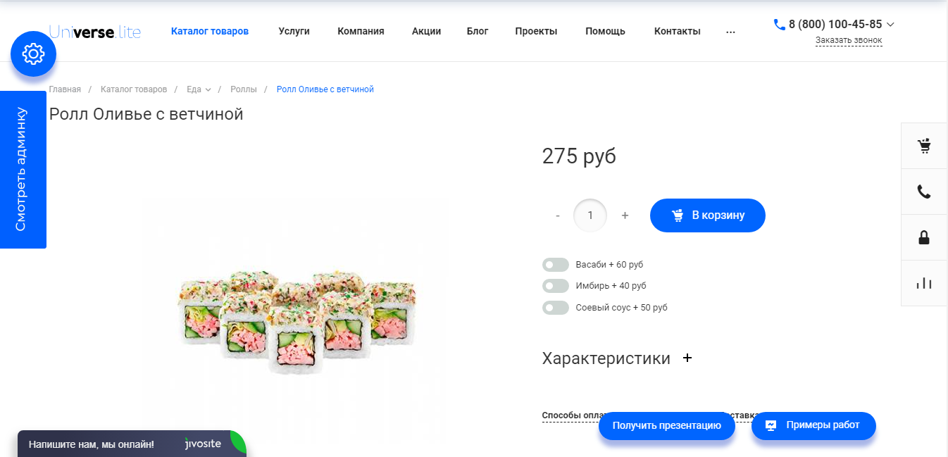 Вы можете добавить дополнительные товары или услуги. Например, к набору суши вы можете добавить дополнительный соус, васаби или имбирь.