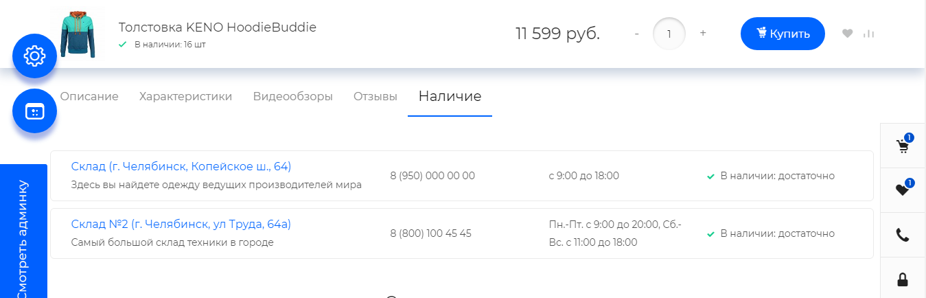 Теперь данные характеристики доступны везде: в списке товаров, быстром просмотре, поиске и в карточке товара.