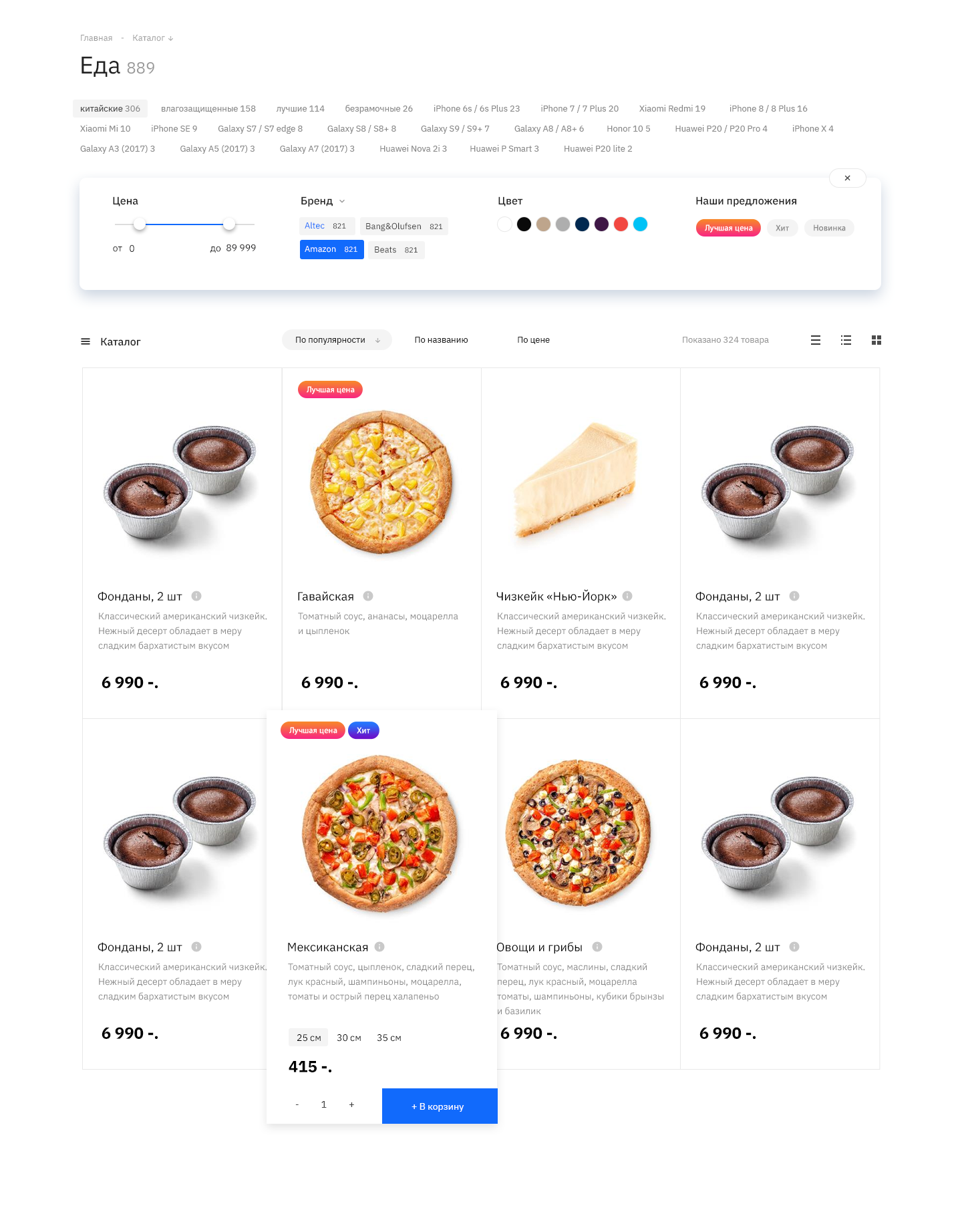 2. Также мы разработали отображение каталога, адаптированное под службу доставки еды.