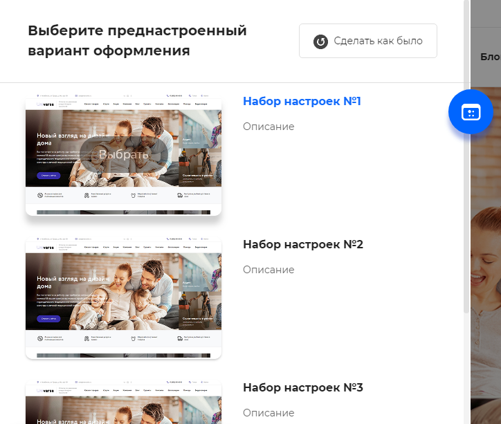 Теперь вы можете посмотреть готовую компоновку блоков, а также вариаций шаблонов внутренних страниц в один клик! Рядом с шестеренкой появилась новая иконка - вариатор, при нажатии на которую появляются преднастроенные варианты оформления.